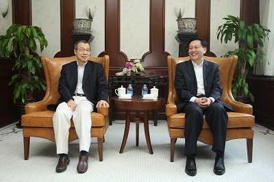 (俞偉景董事長與交大黨委書記姜斯憲在徐匯校區總辦公廳會面)