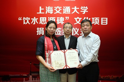 聯合水務董事長俞偉景先生和夫人晉琰女士為上海交通大學“飲水思源碑”修繕項目捐贈200萬元